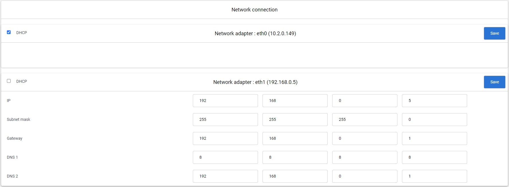 | <mark style="color:blue;">DNS 1</mark>        | 192 | 168 | 1   | 1 |